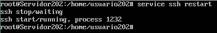 Con el comando service + ssh + restart, reiniciamos los servicios de ssh.