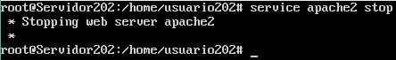 Con el comando service + apache2 + stop, se pausa los servicios de apache2.