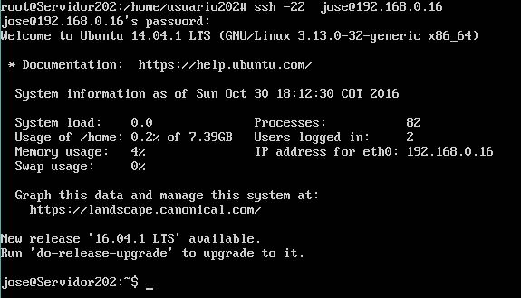 Se uso el comando ssh + -22 + usuario@ip para acceder a otra maquina.
